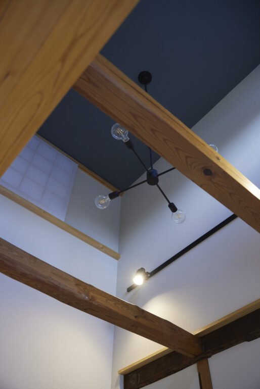 世羅(4地域)という冬の厳しい地域対策として断熱改修をきちんと行い、複雑に増改築を繰り返していた既存住宅の建物負担を減らすため減築を行い、さらに耐震面の補強など性能向上の更新を行いながら、既存の間取りを活かしながら、元々の柱や桁、石など素材の再利用・再活用を行った。